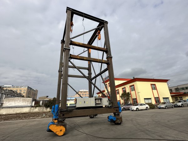 靖起制造的出口移動式龍門吊進行試車實驗啦!