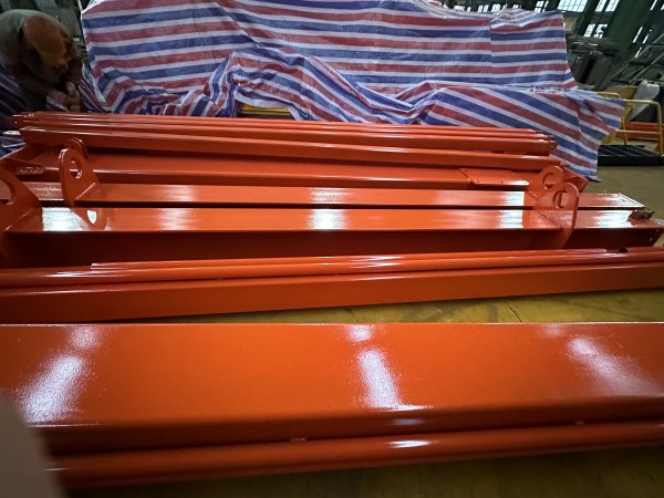 前天公司生產(chǎn)的10噸移動(dòng)式龍門(mén)吊進(jìn)行了空載及滿載實(shí)驗(yàn),一切性能指標(biāo)合格后,進(jìn)行了噴漆工序。今天一早,車(chē)間已經(jīng)在裝車(chē)準(zhǔn)備發(fā)貨了,讓我們一起去看看吧: