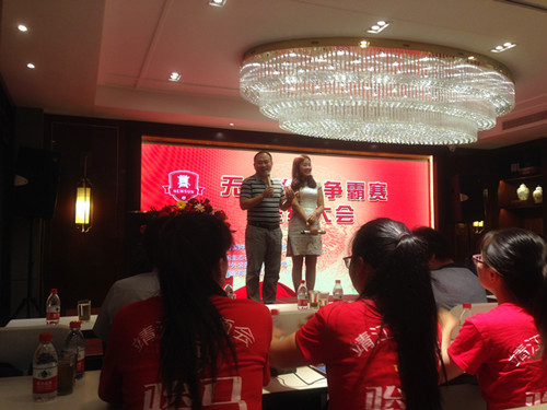 這次的會(huì)議主持仍是靖江牛商會(huì)胡會(huì)長(zhǎng)和袁小瓊這對(duì)黃金搭檔來共同主持。會(huì)議開始后,首先由無錫牛商會(huì)長(zhǎng)王秋芬女士上臺(tái)致辭,王會(huì)長(zhǎng)問大家知道無錫牛商會(huì)的的宗旨是什么?繆旭君總司令回答道:“無 錫牛商強(qiáng)力生長(zhǎng),無錫無錫創(chuàng)造奇跡!” 這次牛商爭(zhēng)霸賽中,無錫牛商可謂是表現(xiàn)出眾,超額完成任務(wù) !3個(gè)月牛商爭(zhēng)霸賽原定目標(biāo)1.2億,實(shí)際完成達(dá)1.3億!