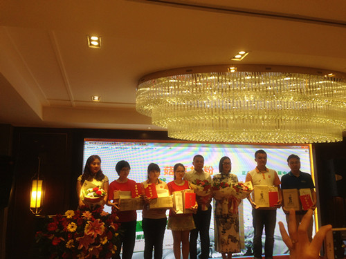 在享受了一頓美味的午餐后,到了一天最激動(dòng)人心的時(shí)刻了,接下來由靖江起重設(shè)備廠總經(jīng)理繆旭君總司令為在此次牛商爭(zhēng)霸賽中表現(xiàn)優(yōu)異的企業(yè)頒發(fā)獎(jiǎng)項(xiàng)和禮品。此次獎(jiǎng)項(xiàng)設(shè)立了最凝聚力企業(yè)獎(jiǎng)項(xiàng)和優(yōu)秀業(yè)績(jī)獎(jiǎng)兩大獎(jiǎng)項(xiàng)。下面就是各企業(yè)代表們領(lǐng)取獎(jiǎng)狀證書和禮品的時(shí)刻啦!繆旭君總司令穿著一身青花瓷系列旗袍,姿態(tài)優(yōu)雅,與每位獲獎(jiǎng)代表握手,表達(dá)祝福。