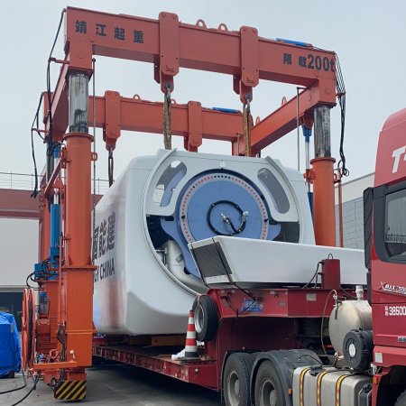 200噸的液壓龍門吊,應(yīng)用于風(fēng)電行業(yè)的吊運(yùn)。