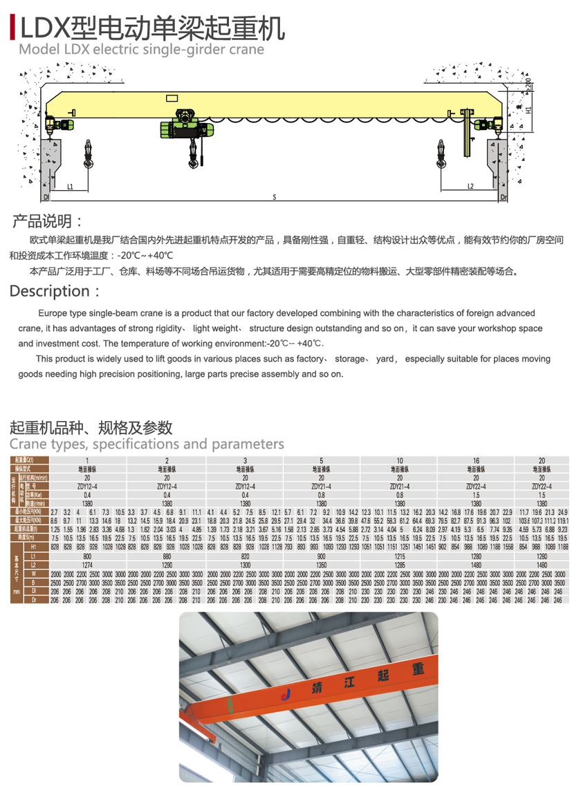 歐式單梁起重機(jī)是我廠結(jié)合國內(nèi)外先進(jìn)起重機(jī)特點(diǎn)開發(fā)的產(chǎn)品,具備剛性強(qiáng),自重輕、結(jié)構(gòu)設(shè)計(jì)出眾等優(yōu)點(diǎn),能有效節(jié)約你的廠房空間和投資成本工作環(huán)境溫度:-20℃~+40℃。