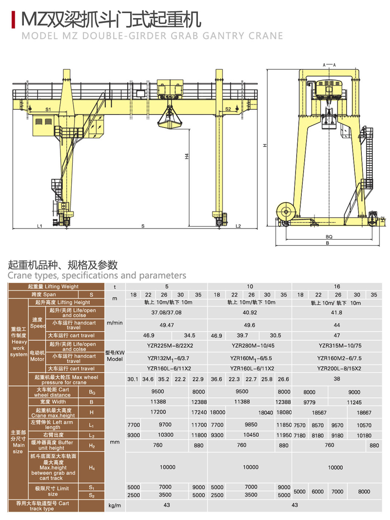 龍門抓斗起重機(jī)適用冶金、水泥、化工及其它企業(yè)的倉庫和車間在室內(nèi)或露天和固定跨間從事礦石、石灰石、礦粉、焦炭、煤砂等散粒物的搬運(yùn)工作。