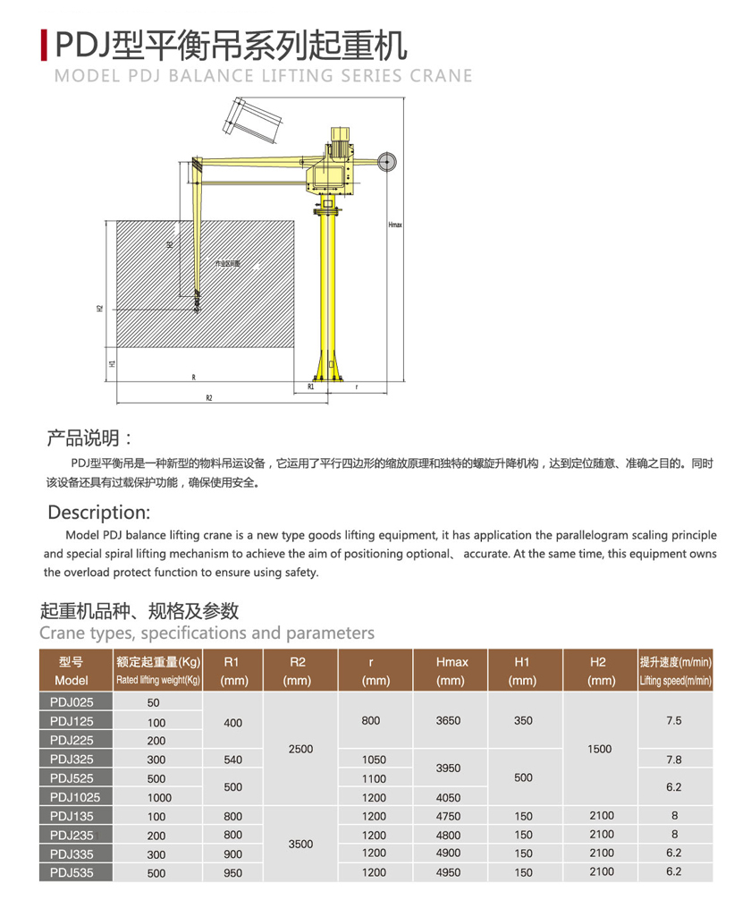 PDJ高型平衡吊系列起重機(jī)結(jié)構(gòu)設(shè)計合理、操作方便、運(yùn)行可靠、維修簡單,廣泛適用于機(jī)床加工的上下零件、工序間的零部件裝配以及車站、碼頭、倉庫等各種場合的短距離、高頻率、密集性吊運(yùn)作業(yè)。