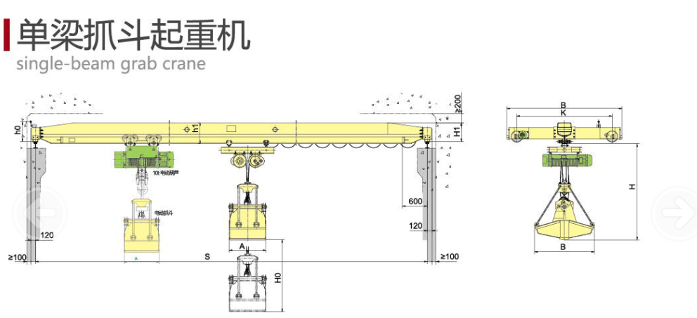 該系列起重機在LD電動單梁起重機基礎(chǔ)上開發(fā)的產(chǎn)品,它與電動葫蘆抓斗小車配套使用,用于輕型抓斗的物料抓取 ,是一種理想的輕小型物料抓取起重機。